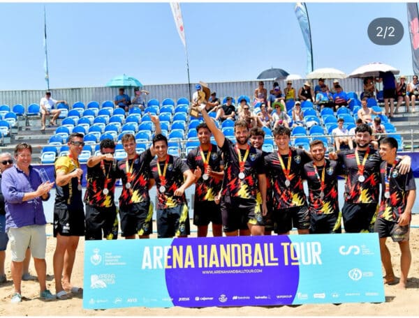 Der Rayito Salinero Beachhandball Club setzt sich weiterhin in Spaniens Elite-Beachhandballteams durch. Am vergangenen Wochenende erreichte die Herren-Nationalmannschaft beim prestigeträchtigen Arena 1000 Masters-Turnier in La Manga del Mar Menor, an dem die acht besten Teams des Landes teilnahmen, den zweiten Platz. Das Finale, das live auf Teledeporte übertragen wurde, verschaffte dem Club aus Torrevieja landesweite Aufmerksamkeit.